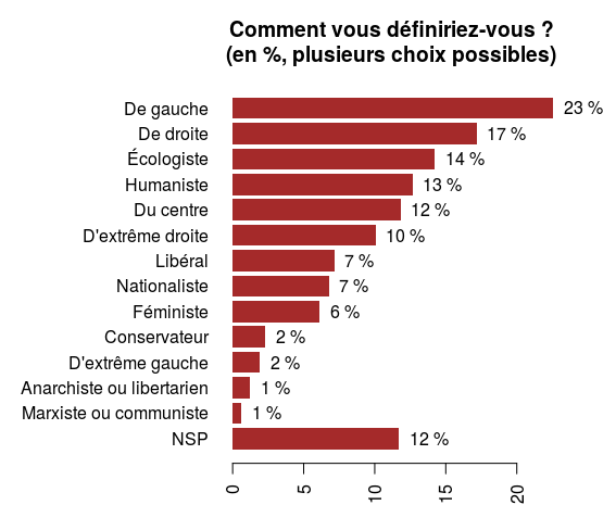 Lors du sondage Fiscalité, les répondants répondaient à l'aide d'un curseur allant de 0% à 20% et d'une case "NSP (Ne sait pas, ne se prononce pas" ; dans le sondage Politique, les répondaient avaient à leur disposition un champ libre.
