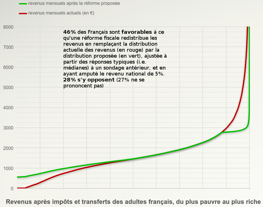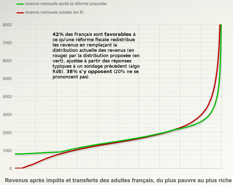 En outre, alors que l'augmentation du PIB par habitant (qui est semblable à la consommation par tête moyenne) est un objectif omniprésent et controversé, la majorité des Français ne pense pas qu'il faille l'augmenter.